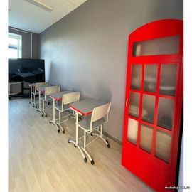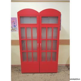 Шкаф красного цвета, выполненный в стиле знаменитой телефонной будки Лондона. Фасады в шкафу - МДФ с окраской, стекло полупрозрачное. Шкаф можно использовать для хранения книг, пособий, учебных материалов и т.д.Изготовление на заказ: любой размер, любой цвет, любое наполнение.