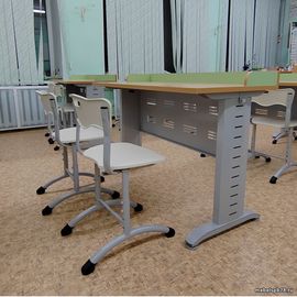 Парта может быть использована для проведения теоретических и практических занятий в кабинете физики, химии, биологии. Парта может быть не регулируемая и изготавливаться на конкретную группу роста 2,3,4,5,6,7, или регулируемая по высоте с 2-4 гр.р., с 3-6 гр.р., с 2-6 гр.р. Комплектуется столешницей с пластиковым влаго- и химически стойким покрытием, с прямыми или скругленными углами. На столешницы смонтирован п-образный бортик для удобства проведения лабораторных работ. Парта может комплектоваться полкой под столешницей. Столешница по периметру обрамлена противоударной кромкой ПВХ толщиной 2 мм. Каркас (основание) парты школьной изготовлен из профильной трубы 25 х 25 мм. Вес каркаса 5,6 кг. Каркас парты может быть с усилением. Усиление может быть и под столешницей, и в основании парты. Цвет каркаса любой: серый, черный, бежевый, металлик и др. Столешницы у школьных парт и столов могут быть изготовлены из ЛДСП или пластика любого цвета.