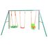 Комплектацию можно менять, добавив различные виды качелей, а также дополнительные элементы. Все детали конструкции надежно зафиксированы металлическими крепежами и закрыты пластиковыми заглушками для детской безопасности.