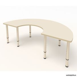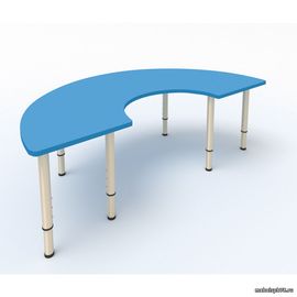 Мы изготавливаем столы для групп садиков и школ развития различных фигурных форм. Такие формы позволяют расставлять столы для удобного проведения занятий и коммуникации детей. Все столы удачно стыкуются друг с другом и позволяют оставлять место для свободного перемещения по группе ДОУ. Столешница выполнена из МДФ толщиной 16 мм с покрытием эмалью в различные цвета. Опоры стола для детского сада имеют телескопическую конструкцию и состоят из труб диаметром 40 и 32 мм. Такие опоры позволяют легко и быстро менять высоту стола в соответствии со следующими ростовыми группами: