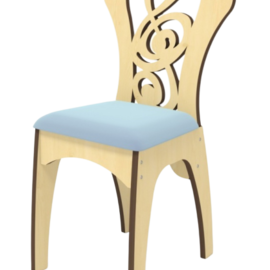 Каркас стула выполнен из фанеры толщиной 15мм с покрытием износостойкой эмалью в различные цвета. Сиденье мягкое: ППУ и обивка цветной экокожей. Цвет на выбор. Спинка выполнена с декоративной сквозной фрезеровкой в виде скрипичного ключа.