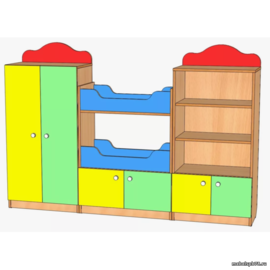 Кукольный набор мебели прекрасно подойдет для детских учреждений. Развивает фантазию, помогает детям обучаться необходимым навыкам, развивать и отрабатывать коммуникативные и социальные связи. Материал - ЛДСП. Цвет можно заказать любой. Также можно изменить размеры и внести в конструкцию изменения.