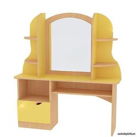 Набор игровой мебели для ДОУ для игры в парикмахеров и салон красоты. Комплект включается в себя безопасное зеркало, выдвижной ящик для хранения, полки. столешницу. Предлагаем изготовление детской игровой мебели под заказ по индивидуальным размерам. Осуществляем доставку и сборку по Санкт-Петербург и Лен.области. Участвуем в тендерах и эл.магазинах. Предлагаем широкую цветовую гамму.