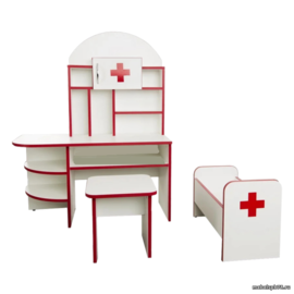 Набор игровой мебели в формате больницы для игру в доктора. Прекрасно развивает мышление детей, фантазию, способствуют развитию коммуникаций между детьми.