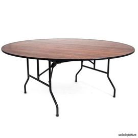 Круглый банкетный складной стол СРП-С-107 со столешницей диаметром 1200 мм. Столешница выполнена из не влагостойкой ЛДСП 16 мм, покрытой с обеих сторон меламиновой пленкой, имитирующей ценные породы дерева. Форма столешницы круглая с врезной Т-образной кромкой. Столешницу поддерживает царга 900х600 мм, а также надежный и прочный каркас, изготовленный из металлической трубы с полимерным покрытием. Ножки каркаса укомплектованы пластиковыми заглушками Ø25 мм. Покрытие металлокаркаса только в порошковой окраске (ЭМАЛЬ).