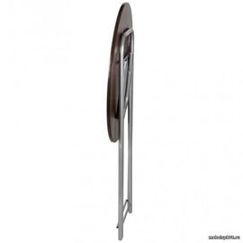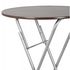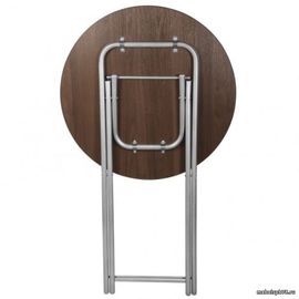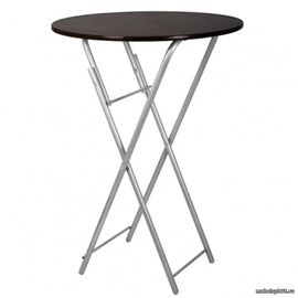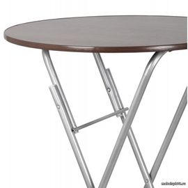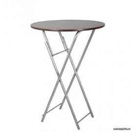 БАРНЫЙ складной стол (высотой 110 см) со столешницей диаметром 800 мм. Столешница выполнена из не влагостойкой ЛДСП 16 мм, покрытой с обеих сторон меламиновой пленкой, имитирующей ценные породы дерева. Форма столешницы круглая с врезной Т-образной кромкой. Столешницу поддерживает надежный и прочный каркас, изготовленный из металлической трубы с полимерным покрытием. Ножки каркаса укомплектованы пластиковыми заглушками Ø25 мм. Барный складной стол арт. Такой барный складной стол предназначен для интенсивного использования в ресторанном бизнесе (направление «HoReCa» или «Кейтеринг»), а также на выездных мероприятиях или в частных загородных домах. Благодаря своему универсальному дизайну модель прекрасно впишется в интерьер кафе, баров, ресторанов, столовых. Покрытие металлокаркаса только в порошковой окраске (ЭМАЛЬ)