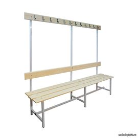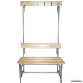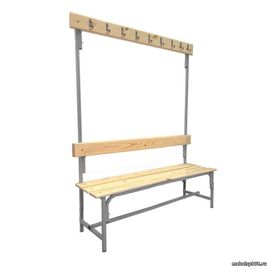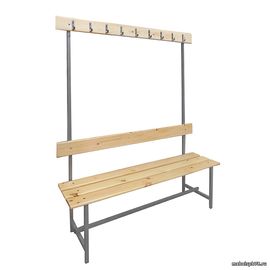 Скамья с вешалкой односторонняя предназначена для размещения в гардеробах всевозможных крупных учреждений: в театрах, ресторанах, в спортивных комплексах, в торговых центрах, а также в поликлинниках, школах и других государственных учреждениях.