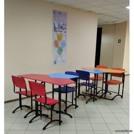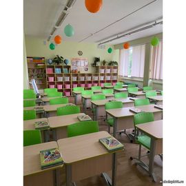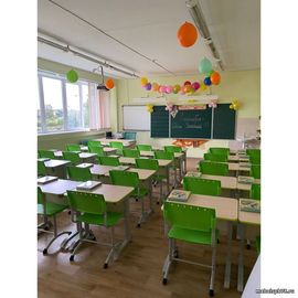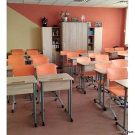 Оснастили учебный класс в школе удобными современными партами и стульями.