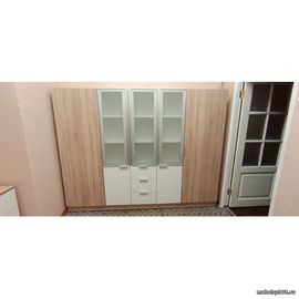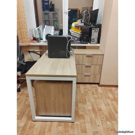 Мебель для кабинета изготовлена по индивидуальному проекту, исходя из размеров и конфигурации помещения. Материал - ЛДСП. цвет - ДУБ Сонома. Столы установлены на металлические О-опоры с "парящими" столешницами. Тумбы на роликах, мобильные. В шкафах для документах фасады чередуются: глухие и в алюминиевой рамке со стеклом. Каждое изделие может быть изготовлено по индивидуальным размерам, в любом цвете.