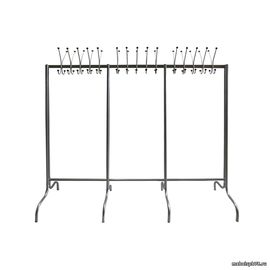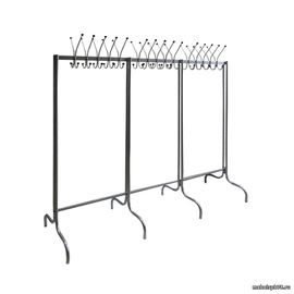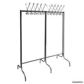 Вешалка изготавливается из стальной профильной трубы, стойки модуля имеют цельносварную конструкцию, покрыта порошковой эмалью, 10 крючков, все торцы закрыты пластиковыми заглушками.