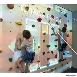 Интерактивный скалодром – стена, оборудованная выступами для лазания и меняющая свой дизайн в зависимости от выбора игры. Это система, которая с помощью инновационных технологий позволяет решать образовательные задачи в движении. Интерактивные скалодромы используются в ДОО, школах, центрах детского развития, частных спортивных центрах для детей. Подходит для работы с детьми от 3 до 12 лет. Количество режимов для интерактивного скалодрома: 16.