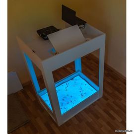 Интерактивная песочница “Домик” подходит для работы в детских садах и медицинских учреждений, в так же кабинетах психолога, частных развивающих центрах, сенсорных комнат. Можно заниматься группой детей до 6-7 человек. Дополнительно можно приобрести тумбу, чтобы сделать песочницу выше (+40 см).