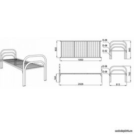 Габариты (ДхШхВ): 2026х813х860Спальное место: 1950х800Описание: сварной каркас ложа 40х25, сетка 100х65х4, h ложа 395, h спинок 760, 860 мм
