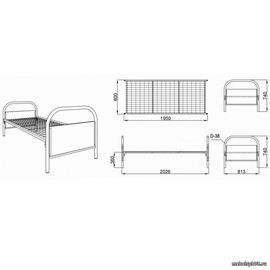 Габариты (ДхШхВ): 2026х813х740Спальное место: 1950х800Описание: сварной каркас ложа 40х25, сетка 100х65х4, h ложа 360, спинки d38