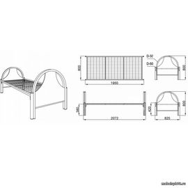 Габариты (ДхШхВ): 2072х825х800Спальное место: 1950х800Описание: сварной каркас ложа 40х25,сетка 100х65х4, h ложа 380, спинки d38, d50