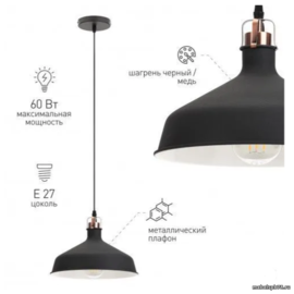 Тип цоколя E27Материал плафона - МеталлТип выключателя - МеханическийМакс. мощность ламп, 60 ВтНапряжение питания, 220 ВСтепень защиты IP20Вид питания От сети 220В -